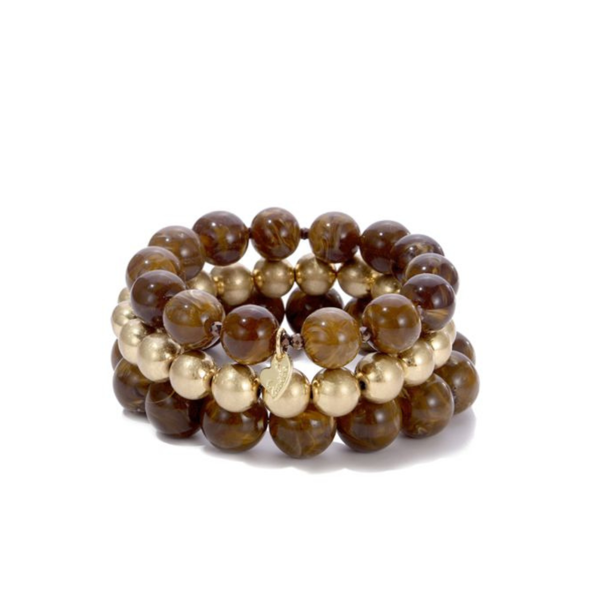 Kleur: 2 bruine armbanden en 1 armband met gouden kralen