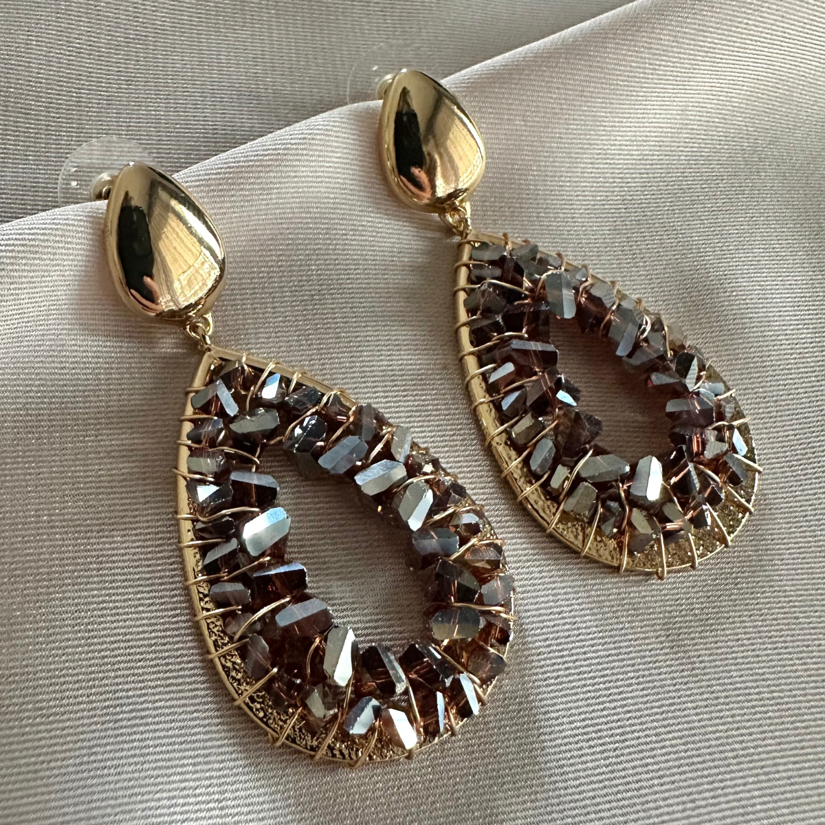 Mooie statement oorbellen in het bruin met gouden details. De oorbellen zijn licht en helemaal trendy.